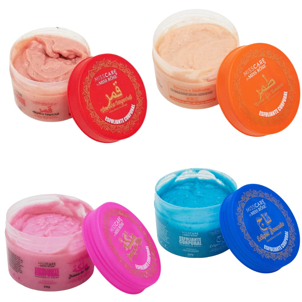 Descubra a exclusividade e a eficácia do Esfoliante Corpo e Rosto da Linha Árabe Miss Rôse, especialmente desenvolvido para limpar profundamente, remover células mortas e estimular a renovação celular tanto do rosto quanto do corpo. Sua fórmula inspirada nos aromas e ingredientes da tradição árabe traz uma experiência sensorial única que transforma sua rotina de cuidados em um verdadeiro momento de prazer.