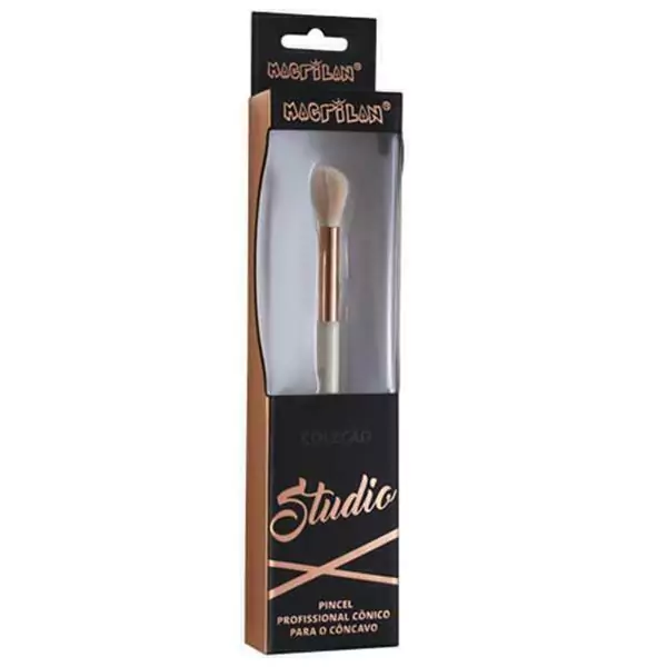 Pincel Macrilan E12 especialmente desenvolvido com cerdas naturais, macias e com a ponta mais longa, que encaixa perfeitamente no côncavo, dando precisão e controle. Indicado também para esfumar detalhes e aplicar sombra no canto interno dos olhos.